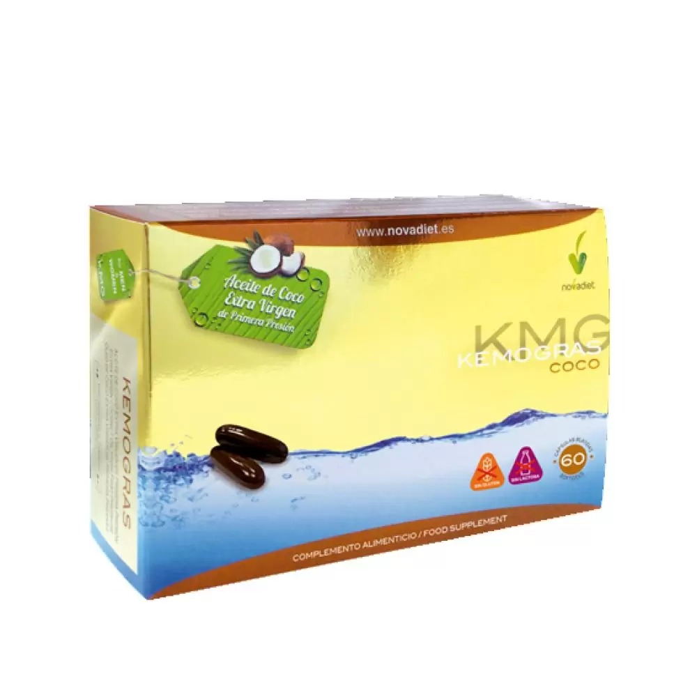 Kemogras Coco 60 cápsulas Novadiet es un complemento alimenticio elaborado con aceite de coco ecológico extra virgen de primera presión en frío, una fuente natural rica en triglicéridos de cadena media (MCT).